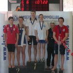 Även Jacob fick en pallplacering på paradgrenen 100 fly, där han simmade in på nytt pers (1.04.24) Han simmade också ok i de andra grenarna, en 9 plats totalt fick han.