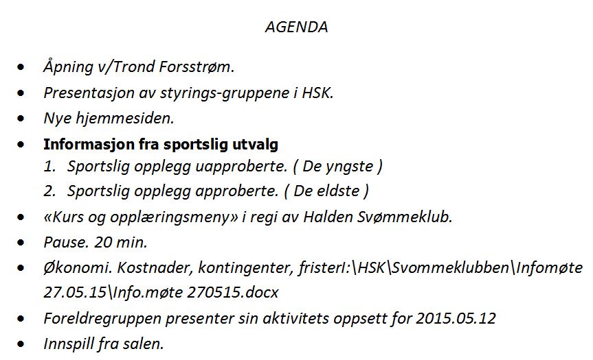 Alle som er interessert i Haldens Svømmeklubs planer, drift, aktivitet og sportslige satsing er velkommen.