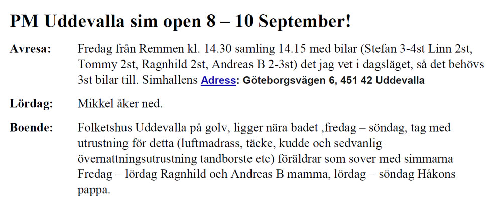 Stevnets nettside http://uso.uddevallasim.se Kjøreliste